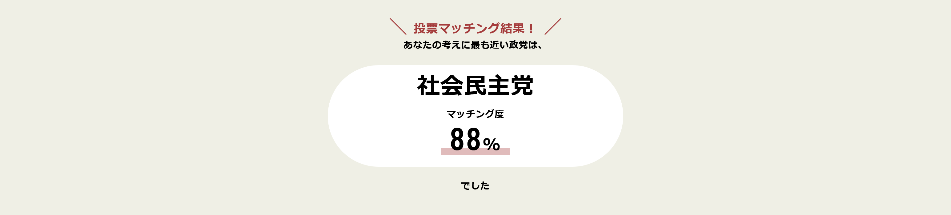 試しに私もマッチングしてみたところ、私との一致度が最も高い政党は社民党となりました。