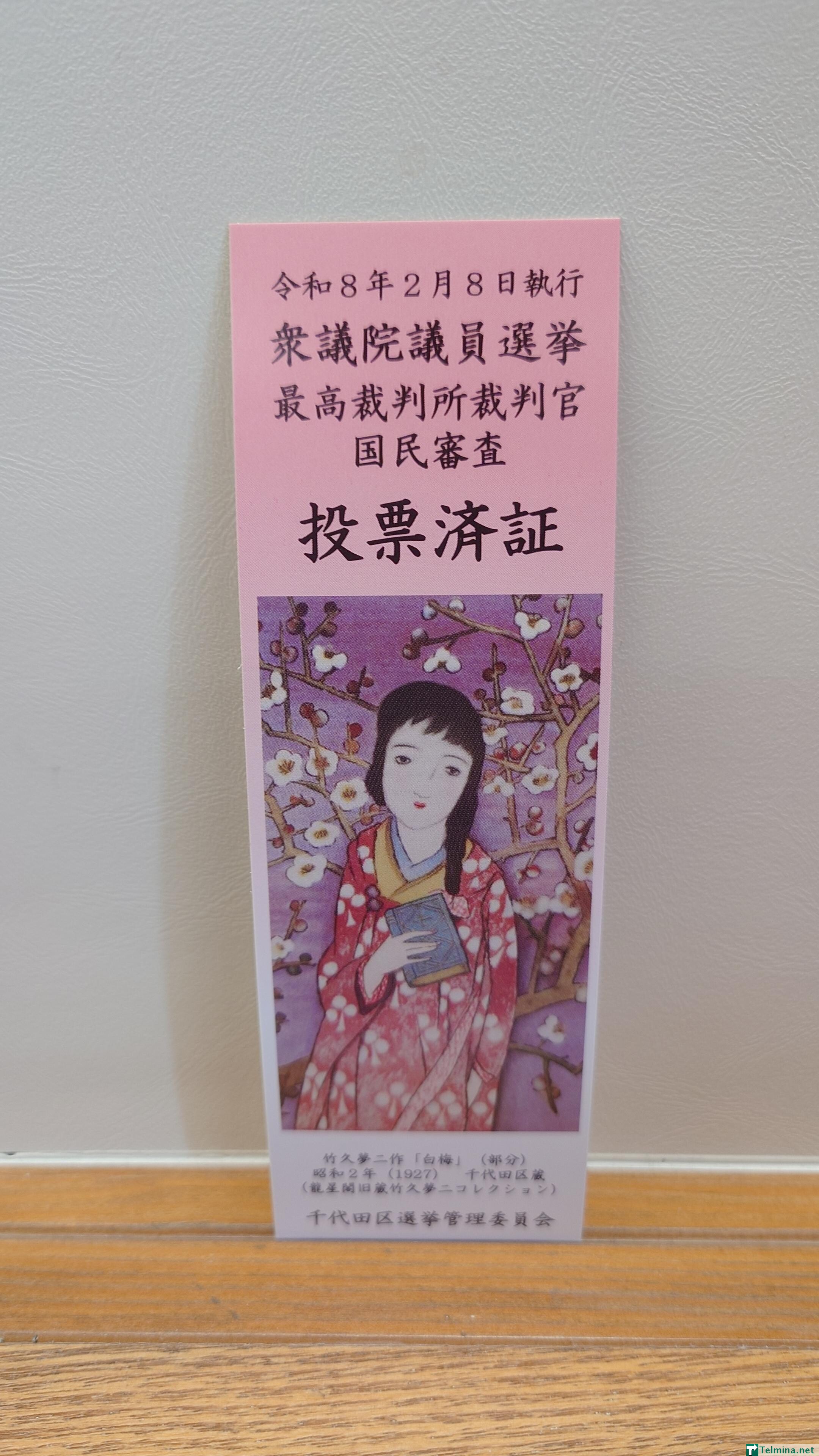 数年前まではモノクロで無骨だった千代田区の投票済証も、近年では本のしおりとして使えるカラフルなものになりました。