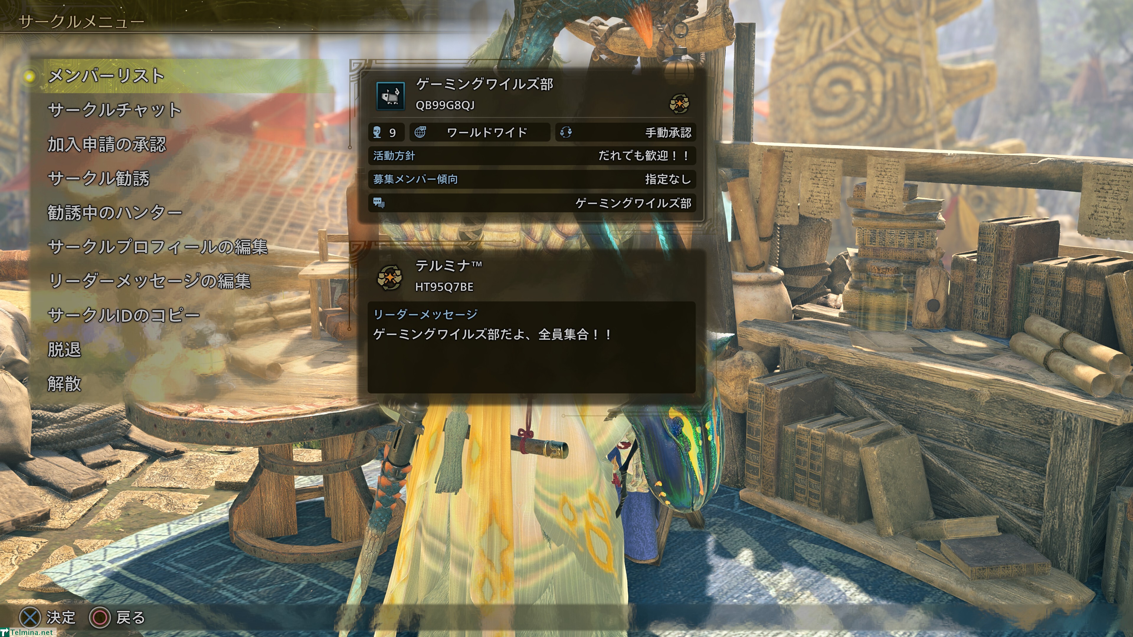私も参加している「モンスターハンターワイルズ」のゲーム内サークルは、「ゲーミングワイルズ部」という名前です。